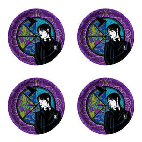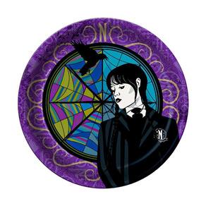 Contém: 8 Pratinhos Descartáveis Redondos de Papel da Wandinha