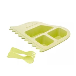 Prato Dino Baby com 2 Talheres Fibra de Bambu Lyor