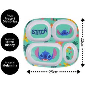 Prato Divisória Infantil Disney Stitch Melamine 24,5Cm
