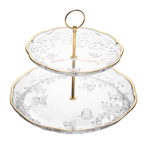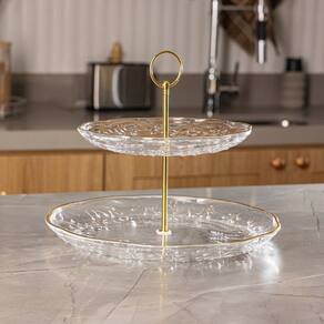 Delicadeza com um toque de ouro. O prato duplo para doces New Butterfly com fio dourado eleva a sua mesa com sofisticação e brilho sutil. • Cristal ecológico com acabamento em fio de ouro Elegância e impacto visual. • Dois andares Sirva com praticidade e destaque as delícias do dia. • Design exclusivo A linha New Butterfly é puro charme e romantismo. • Tamanho ideal Valoriza desde pequenos encontros até eventos especiais.