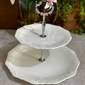 O Prato Duplo para Doces Durable Porcelain da Wolff em Alto Relevo Branco é uma peça de servir sofisticada, composta por dois níveis de pratos em porcelana de alta resistência, projetada para apresentações elegantes de sobremesas e doces em mesas postas.
