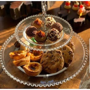 Lindo Prato Duplo de Cristal para doces, para servir seus convidados em alto estilo, deixando o ambiente elegante e charmoso. Esse prato duplo irá trazer infinitas possibilidades para tornar seu ambiente ainda mais requintado, podendo ser utilizado para doces, bolos, tortas, cup cakes e outros