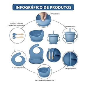 Introduza os seus pequenos ao mundo dos alimentos sólidos com este encantador conjunto de refeição infantil, composto por 8 peças. Fabricado em silicone de qualidade alimentar, bpa free e com cabos de madeira ecológica, oferece segurança e durabilidade.