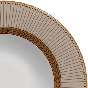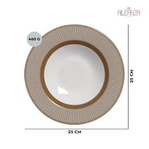 Demonstre Amor e Zelo com o Prato Fundo Coleção Prata Celebrate Fendi, da Alleanza. com Interior Branco e Bordas Estampadas com Traços Retos em Tons de Bege, Cinza e Dourado, Possui Detalhes Ricos Que Deixam a Louça Mais Sofisticada e Elegante. Ele É Ideal Para Servir Caldos, Sopas, Cremes, Purês, Massas e Outras Refeições, Dando Um Toque Especial à Mesa Posta. Elaborado em Cerâmica Feldspática, Possui Alta Resistência Por Meio de Processo de Decoração Digital e Pode Ser Levado Ao Micro-Ondas e à Lava-Louças. Além Disso, a Louça de Cerâmica Não Libera Substâncias Tóxicas.