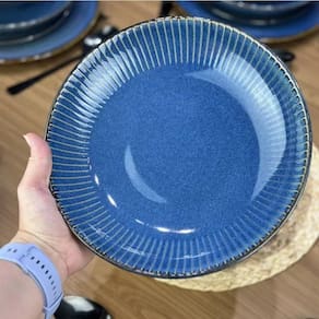 Prato Fundo de Massas Cerâmica Linear Azul Premium 23cm Lyor