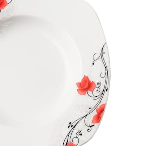 O Prato Rosas segue a nova tendência e traz formato quadrado com as bordas arredondoadas que aposta na autenticidade e no contraste de cores, trazendo à sua mesa mais charme e sofisticação nos momentos de suas refeições. É produzido em porcelana de altíssima qualidade na cor branco com floral vermelho que traz uma sensação de leveza a sua mesa.