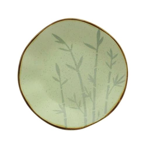 Elegância Duradoura: A decoração do prato destaca o bambu, um símbolo de tradição e cultura. Com um acabamento vintage alcançado por uma técnica manual de esmalte reagente, o Prato Fundo Em Porcelana Bambu Oxford é uma peça que celebra a estética clássica e a artesania refinada.