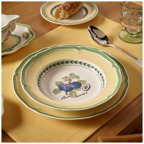 A coleção French Garden da Villeroy Boch traz uma visão moderna do estilo rústico, refletindo o calor e a beleza da natureza através de padrões únicos. Enquanto outros estilos campestres focam em desenhos florais, a French Garden se inspira nas frutas do jardim. O design é simples, mas cheio de detalhes, e suas cores garantem que sua mesa fique linda, mesmo com pequenos acessórios.