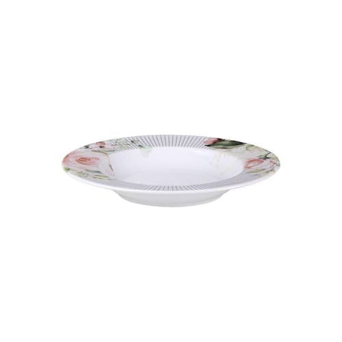 Prato Fundo Tramontina Ornatta Em Porcelana Decorada 23 Cm Prato Fundo Tramontina Ornatta em Porcelana Decorada 23 cm O prato fundo Tramontina Ornatta em porcelana decorada 23 centímetros de diâmetro é perfeito para quem busca um estilo elegante, feminino e clássico. Parte do Tramontina Estilo Flora, essa peça traz cor e delicadeza para uma mesa atemporal. Afinal, flores são bem-vindas em qualquer estação. Inspirado nas clássicas rosas pintadas em aquarela, esse prato apresenta uma decoração sofisticada e atemporal. Seus buquês com movimento e naturalidade e o detalhe em suas bordas transmitem charme e elegância para todas as suas refeições. Feito em porcelana decorada e tradicional Tramontina, o prato fundo Tramontina Ornatta é ideal servir diversas opções de sopas, caldos e cremes com praticidade e estilo. Seu design sofisticado combina com diferentes estilos de decoração, tornando-o essencial para a composição da sua mesa!