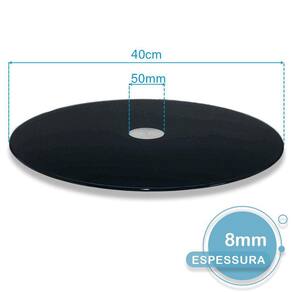Prato giratório 40cm de vidro temperado 8mm cor pretoDescrição:Maior eficiência maior qualidade com satisfação 100% garantida.O prato giratório é moderno, inovador e adiciona muito conforto e praticidade à sua mesa, você não vai precisar levantar da cadeira ou estica-se sob à mesa, basta girar o prato e pronto, ele deixa os alimentos sempre à mão.Por que o nosso produto é o melhor do mercado 100% de satisfação- vidro temperado 8mm 5 à 7x mais resistente do que o vidro comum;- muito mais resistente à variações de temperatura de até 250ºc panelas etc... - base giratório reforçada e blindada oferece giro livre e macio sem trancos;- prato inferior garante a maior estabilidade 'não tomba';- qualidade high-premium foi feito para durar;- suporta em sua base até 100kg;- corte à laser sem rebarbas, acabamento perfeito c/borda infinita;- vidro temperado é considerado como vidro de segurança não estilhaça ;- sucesso absoluto, quem utiliza aprova e recomendaAtenção Nosso maior compromisso é a qualidade e segurança, fique atento à economizar comprando prato giratório pelo menor preço.Com segurança não se brinca, existem pratos no mercado que estão descolando à mesa, isso pode transformar um momento familiar no maior pesadelo.Muitas vezes o barato sai caro. Exija qualidade para sua total segurança.Dica: decorativo e funcional, pode ser utilizado também como centro de mesa.Dica extra: pode ser utilizado para exposição de produtos em lojas, é ótimo para confeitar bolos.Cuidados:Utilize detergente neutro e enxágue com água em abundância.Para secar utilize pano seco e macio.Utilize esponja macia e não abrasiva.'prato giratório para mesa' 'prato giratório para bolo' 'prato giratório bailarina' 'prato giratório de vidro' 'prato giratório para mesa 70cm' 'prato giratório de vidro temperado''prato giratório de vidro'Características:Altura: 5cmDiâmetro: 40cmBase giratória: 5cmEspessura do vidro: 8mmCor: pretoMaterial: vidro e rolamento de alumínio Conteúdo:1 x prato giratório preto 40cm Sku: tb002316