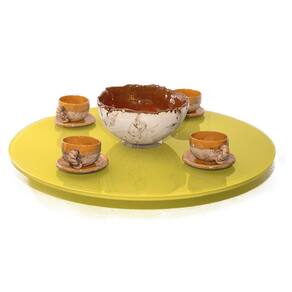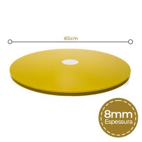 Prato Giratório 65Cm De Vidro Temperado 8Mm Cor Amarelo - vidro temperado 8mm 5 à 7x mais resistente do que o vidro comum; - muito mais resistente à variações de temperatura de até 250ºc panelas etc... - base giratório reforçada e blindada oferece giro livre e macio sem trancos; - prato inferior garante a maior estabilidade 'não tomba'; - qualidade high-premium "foi feito para durar"; - suporta em sua base até 100kg; - corte à laser "sem rebarbas", acabamento perfeito c/borda infinita; - vidro temperado é considerado como "vidro de segurança" não estilhaça ; - sucesso absoluto, quem utiliza aprova e recomenda Atenção Nosso maior compromisso é a qualidade e segurança, fique atento à economizar comprando prato giratório pelo menor preço. Com segurança não se brinca, existem pratos no mercado que estão descolando à mesa, isso pode transformar um momento familiar no maior pesadelo. Muitas vezes o barato sai caro. Exija qualidade para sua total segurança. Dica: decorativo e funcional, pode ser utilizado também como centro de mesa. Dica extra: pode ser utilizado para exposição de produtos em lojas, é ótimo para confeitar bolos. Cuidados: Utilize detergente neutro e enxágue com água em abundância. Para secar utilize pano seco e macio. Utilize esponja macia e não abrasiva. Características: Altura: 2cm Diâmetro: 65cm Espessura do vidro: 8mm Cor: amarelo Material: vidro e rolamento de alumínio Conteúdo: 1 x prato giratório amarelo 65cm