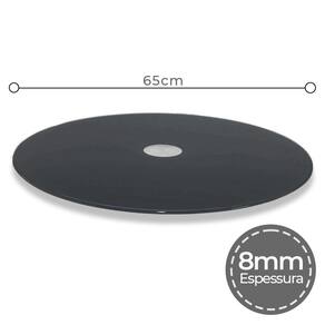 Prato Giratório 65Cm De Vidro Temperado 8Mm Cor Preto - vidro temperado 8mm 5 à 7x mais resistente do que o vidro comum; - muito mais resistente à variações de temperatura de até 250ºc panelas etc... - base giratório reforçada e blindada oferece giro livre e macio sem trancos; - prato inferior garante a maior estabilidade 'não tomba'; - qualidade high-premium "foi feito para durar"; - suporta em sua base até 100kg; - corte à laser "sem rebarbas", acabamento perfeito c/borda infinita; - vidro temperado é considerado como "vidro de segurança" não estilhaça ; - sucesso absoluto, quem utiliza aprova e recomenda Atenção Nosso maior compromisso é a qualidade e segurança, fique atento à economizar comprando prato giratório pelo menor preço. Com segurança não se brinca, existem pratos no mercado que estão descolando à mesa, isso pode transformar um momento familiar no maior pesadelo. Muitas vezes o barato sai caro. Exija qualidade para sua total segurança. Dica: decorativo e funcional, pode ser utilizado também como centro de mesa. Dica extra: pode ser utilizado para exposição de produtos em lojas, é ótimo para confeitar bolos. Cuidados: Utilize detergente neutro e enxágue com água em abundância. Para secar utilize pano seco e macio. Utilize esponja macia e não abrasiva. Características: Altura: 2cm Diâmetro: 65cm Espessura do vidro: 8mm Cor: preto Material: vidro e rolamento de alumínio Conteúdo: 1 x prato giratório preto 65cm Marca: Não Informado