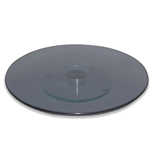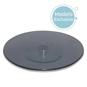 Altura: 5cm Diâmetro: 60cm Base giratória: 5cm Espessura do vidro: 6mm Material: vidro temperado Cor: fumê Conteúdo: