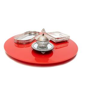 Prato Giratório 75Cm De Vidro Temperado 8Mm Cor Vermelho - vidro temperado 8mm 5 à 7x mais resistente do que o vidro comum; - muito mais resistente à variações de temperatura de até 250ºc panelas etc... - base giratório reforçada e blindada oferece giro livre e macio sem trancos; - prato inferior garante a maior estabilidade 'não tomba'; - qualidade high-premium "foi feito para durar"; - suporta em sua base até 100kg; - corte à laser "sem rebarbas", acabamento perfeito c/borda infinita; - vidro temperado é considerado como "vidro de segurança" não estilhaça ; - sucesso absoluto, quem utiliza aprova e recomenda Atenção Nosso maior compromisso é a qualidade e segurança, fique atento à economizar comprando prato giratório pelo menor preço. Com segurança não se brinca, existem pratos no mercado que estão descolando à mesa, isso pode transformar um momento familiar no maior pesadelo. Muitas vezes o barato sai caro. Exija qualidade para sua total segurança. Dica: decorativo e funcional, pode ser utilizado também como centro de mesa. Dica extra: pode ser utilizado para exposição de produtos em lojas, é ótimo para confeitar bolos. Cuidados: Utilize detergente neutro e enxágue com água em abundância. Para secar utilize pano seco e macio. Utilize esponja macia e não abrasiva. Características: Altura: 2cm Diâmetro: 75cm Espessura do vidro: 8mm Cor: vermelho Material: vidro e rolamento de alumínio Conteúdo: 1 x prato giratório vermelho 75cm