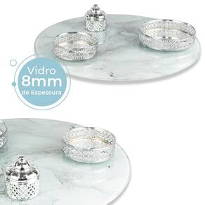 Vidro temperado é 5 à 7x mais resistentes do que o vidro comum Espessura do vidro 8mm, oferece resistência e maior segurança; O único que suporta em sua base até 100 kg aprox; Qualidade high premium, foi feito para durar; Possui base reforçada que oferece muito mais estabilidade, giro livre e macio; Indispensável para o dia-a-dia e ideal para ocasiões e datas especiais; Sucesso em milhares de lares, quem utiliza aprova e recomenda; Desenvolvido por especialistas é o melhor prato giratório do mercado.
