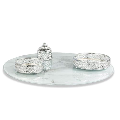 Prato giratório serigrafado marmorizado branco 90 x 8mm