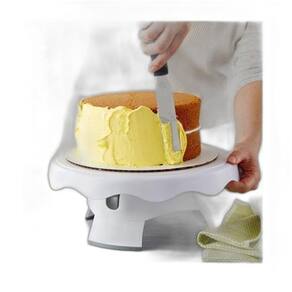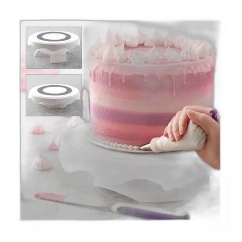 Descrição Contém: 01 prato Giratório Spand 27,5cm Decorando cada centímetro do seu bolo alto e baixo giratório. A configuração mais alta tem a altura certa para bordas e detalhes laterais, enquanto a configuração mais baixa é perfeita para decorar o topo. - Bordas recortadas e base antiderrapante facilitam o giro. - O anel macio mantém o bolo no lugar. - pernas dobradas para cima e embaixo da mesa. -easy lock-pull aba. Uso e cuidados: Antes da primeira utilização e após cada utilização, limpe com um pano húmido e seque bem. Sempre coloque o bolo em uma tábua de bolo antes de colocá-lo no prato giratório. Instruções Ajuste o prato giratório na altura desejada antes de colocar o bolo por cima. Para elevar a mesa para 5 pol. De altura, desdobre as pernas sob a base; para abaixar de volta para 3,45 pol. , dobre as pernas para trás sob a base. Para colocar na posição travada, puxe a aba sob a placa. Empurre a aba de volta para destravar.