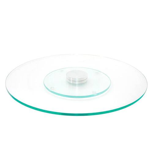Características: - Altura: 5cm - Diâmetro: 90cm - Base giratória: 10cm - Espessura do vidro: 8mm - Cor: incolor - Material: vidro temperado - Base giratória inox 304