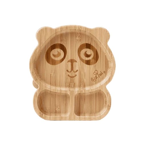 Conteúdo: Um prato infantil de bambu com ventosa e divisória no formato de panda Petit Piá