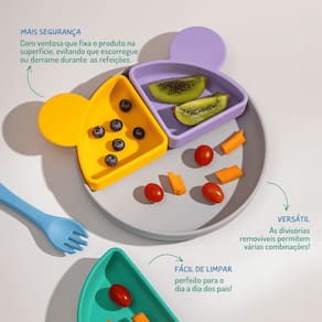 Instruções de uso: Utilize o prato para servir alimentos frios ou mornos. As divisórias removíveis ajudam a organizar as porções de comida, facilitando a alimentação para crianças.