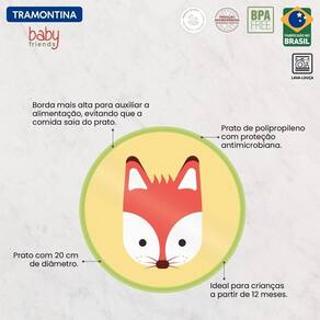 O prato infantil Tramontina Baby Friends em polipropileno verde vai tornar a refeição do seu bebê muito mais colorida e estimular os sentindos dos pequenos durante a refeição. Ele é produzido em polipropileno e conta com borda alta que auxilia durante a alimentação, característica que evita sujeira e desperdícios. Para proporcionar a segurança para seu bebê, ele possui proteção antimicrobiana que inibe o crescimento de fungos e bactérias, proporcionando benefícios em higiene e redução de microorganismos que causam contaminação. É a Tramontina, pensando em toda a sua família!OrientaçõesPrato de polipropileno com borda mais alta para auxiliar a alimentação, evitando que a comida saia do prato.