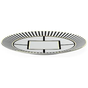 Peso do item: 0,37 kg Tamanho: 22 cm x 22 cm x 2 cm Cor: Branco, Preto e Dourado (padrão listrado) Marca: Não Informado