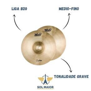 Marca: Zeus Linha: Custom Tipo: hi-hat/chimbal de 13 Espessura: Média-fina Liga de bronze B20 Tonalidade grave Marcação brilhante Marca: Não Informado Ean: 7899854504306