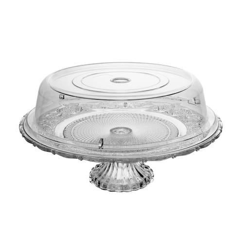 Prato para Bolo de Vidro com Pé e Tampa de Plástico Angel 30cm x 30cm x 10cm - Lyor