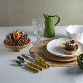 Prato Para Bolo em Bambu Com Pé 20x7cm Lyor Prato para Bolo em Bambu com Pé 20x7cm Lyor Redondo Boleira Pequena com Pedestal.