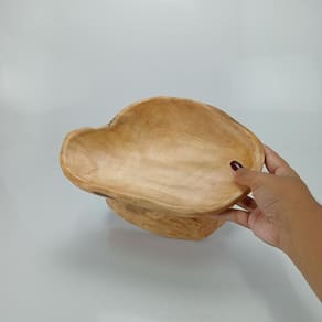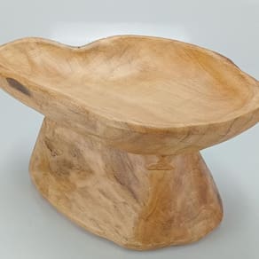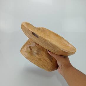PRATO PARA DOCES Altura: 14 cm Largura: 26 cm Profundidade: 17,2 cm Peso: 0,85 Kg Diâmetro da Base: 20,8 cm Material: Madeira Cor: Marrom