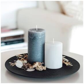 Suas bordas resistentes a choques e impactos tornam este prato ideal para uso em buffets. Com uma textura fosca que simula a ardósia, ele também pode ser utilizado como prato de servir, adicionando um charme especial à sua mesa.