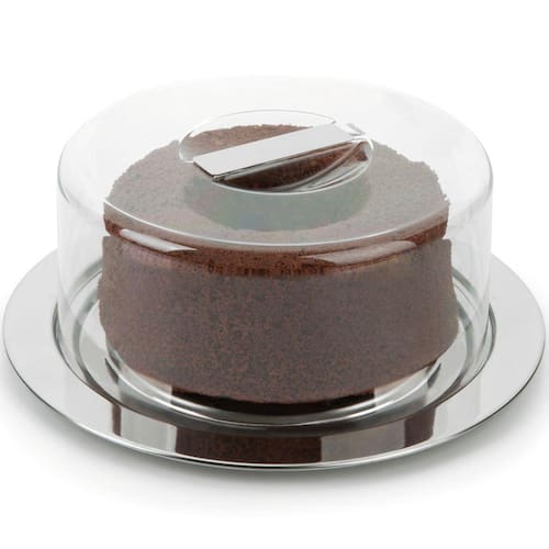 Prato Para Queijo 25cm Porta Bolo Aço Inox Tampa Transparente Vision. #Suporte Para Bolo E Queijo #Porta Bolo Aço Inox #Mesa Posta Garantia: 90 Dias / Peso: 395g / Cores: Inox e Transparente / Ref: 800137 Dimensões: 25cm (D) x 10cm (A) Dimensões Da Bandeja: 25cm (D) x 1cm (A) Dimensões Da Cúpula: 20cm (D) x 9cm (A) Observação: Comporta bolo ou queijo com diâmetro máximo de até 15,5cm e altura de até 8cm. Limpeza e Cuidados: - Lavar com água e sabão neutro utilizando esponja macia, seguido de pano seco; - Não utilizar produtos químicos ou abrasivos na limpeza; - Evitar batidas e contato com objetos cortantes; - Não vai ao micro-ondas e lava-louças. Detalhes do Produto: - Pode ser usado como porta bolo ou para armazenar queijo; - Possui uma canaleta coletora do soro; - Materiais atóxicos e livres de BPA; - Possui alça embutida na tampa. Material: - SAN: Tampa de alta transparência e resistência. Atóxico, não transfere odor ou gosto aos alimentos; - Aço Inox: Bandeja que garante alta resistência à oxidação e longa durabilidade. O Prato para Bolo e Queijo da linha Vision pode ser levado à mesa em qualquer ocasião, além de manter a qualidade do alimento por muito mais tempo. Com formato redondo, o suporte para bolo com 25cm de diâmetro é perfeito para destacar tortas, bolos e até mesmo queijos com charme e higiene. Sua tampa transparente permite a visualização dos alimentos, a bandeja em aço inox possui acabamento em brilho e um design moderno que proporciona requinte ao compor a mesa.