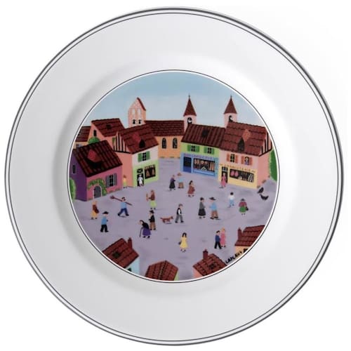 Este prato para salada ou aperitivo é ideal para servir pequenas refeições e sobremesas. Com uma encantadora ilustração de uma vila, ele combina perfeitamente com outras louças da coleção. Sua borda elevada garante um serviço limpo, e seu design empilhável facilita o uso em catering. Feito de porcelana premium de alta qualidade na Alemanha, este prato possui 21 cm de diâmetro e é seguro para lavagem na máquina de lavar louça e utilização no micro-ondas. O design Naif traz um toque especial à mesa, tornando seus momentos à mesa ainda mais agradáveis.