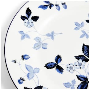 Apresentamos a coleção Wild Strawberry Inky Blue da Wedgwood, uma reinterpret ação sofisticada do clássico design inglês de morangos silvestres. Este prato de salada é elaborado em porcelana fina e branca pura, adornado com um tom azul profundo que evoca a rica tradição da cerâmica inglesa.