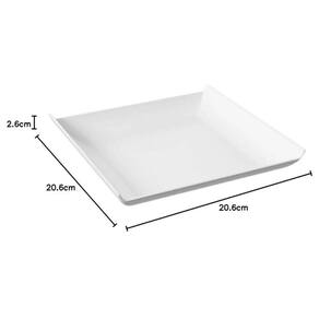 Garantia: 90 dias / Peso: 130g / Cor predominante: branco / Referência: 7896553905182; Dimensões: 20,6cm (C) x 20,6cm (L) x 2,6cm (A); Conteúdo: 1 prato quadrado grande; Material: polipropileno.