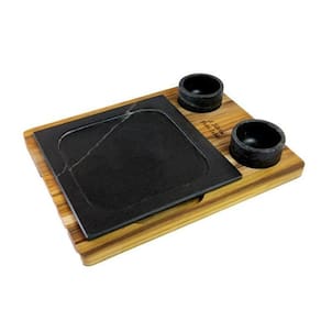 Prato quadrado e duas cumbucas com suporte de madeira 20x20cm