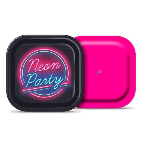 Contém: 8 Pratos de Papel Quadrado do Festa Neon 18cm