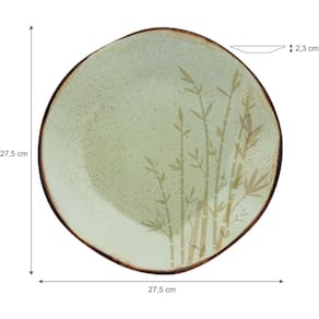 Uso Resistente a micro-ondas, Resistente a lava-louças Cor Marrom, Verde Tipo Raso Material Porcelana Conteúdo da embalagem 1 Prato Raso 27,5 Cm Linha/Decoração Ryo Bambu Conjunto ou avulso Avulso Tipo da embalagem Papelão pardo Formato Outros Decoração Estampado
