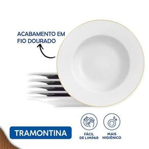 Prato Porcelana Tramontina Elisa 28cm Raso Filete Ouro 96010301 Adicione um toque de sofisticação e elegância às suas refeições com o Prato de Porcelana Tramontina Elisa. Com 28 cm de diâmetro, este prato raso é perfeito para servir pratos principais com estilo e requinte. Sua porcelana de alta qualidade é resistente e possui acabamento impecável, destacando o filete em ouro que traz um charme clássico e luxuoso. Ideal para ocasiões especiais ou para elevar o dia a dia, combina perfeitamente com decorações sofisticadas e mesas bem-postas. Características: Material: Porcelana de alta qualidade Diâmetro: 28 cm Acabamento: Filete em ouro Modelo: Tramontina Elisa Ref. 96010301 Benefícios: Resistente e durável, perfeita para uso frequente Elegante e sofisticado, realça a apresentação dos alimentos Fácil de limpar e manter Marca: Não Informado Ean: 7898683606298