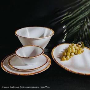 Prato Raso Borda De Bambu Melamina Branco Bon Gourmet 27cm Prato Raso Borda de Bambu Melamina Branco Bon Gourmet 27cm Ter em sua casa este Prato Raso em Melamina Bambu Branco 27cm é garantia de qualidade e praticidade em seu dia a dia ou em momentos especiais com seus amigos e familiares, sem deixar o requinte e o bom gosto de lado.