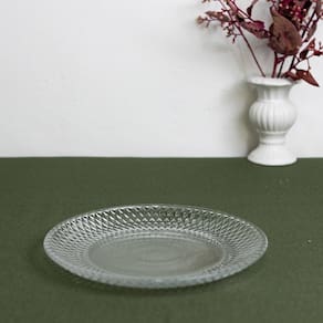 Especificações Técnicas: Dimensões do produto: 25,2 cm (CxLxA) Conteúdo da embalagem: 1 Prato Raso Material: Vidro cristalino