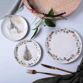 Elegância Duradoura: Com design coup e estampa de guirlanda que exibe símbolos natalinos, este prato mescla o clássico e o contemporâneo, oferecendo um toque refinado à sua mesa.