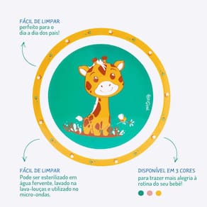 Facilidade no Uso: O prato é simples de limpar, podendo ser lavado à mão ou na máquina de lavar louça. Seu formato raso e bordas elevadas ajudam a manter os alimentos no lugar, facilitando a alimentação autônoma.