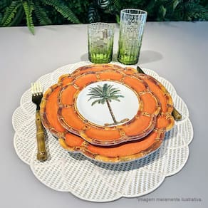 Esse Prato em Melamina com Borda de Desenho de Bambu além de ser lindo é extremamente resistente.