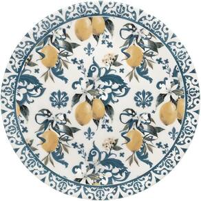 Prato Raso Siciliano 1 Peça Cerâmica para Refeições Branco Azul Amarelo