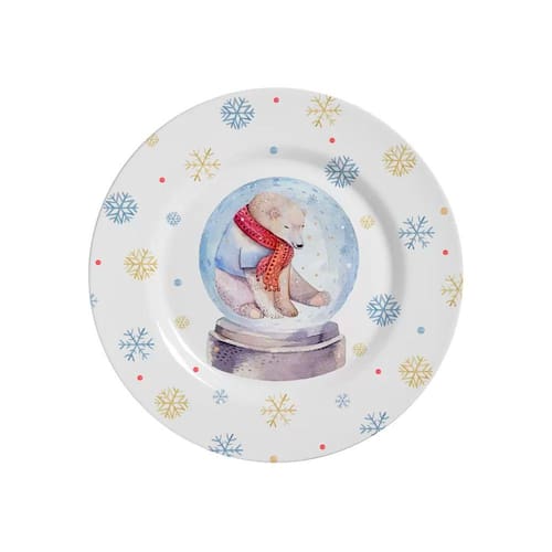 01 Prato Sobremesa Cerâmica Natal Holly Jolly Colors 19,5cm