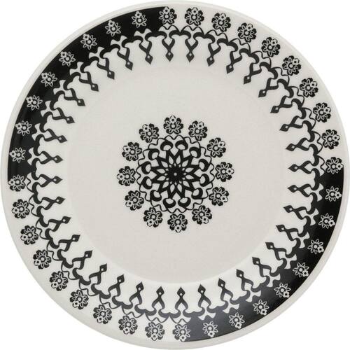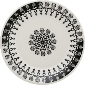 Especificações: Uso: Resistente a micro-ondas, Resistente a lava-louças Material: Cerâmica Formato: Redondo Decoração: estampado Cor: preto Conteúdo da embalagem: 1 prato de sobremesa com 19 cm de diâmetro