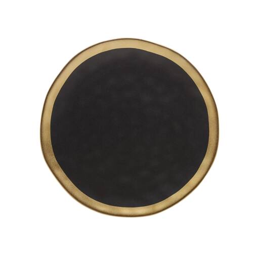 Prato Sobremesa Em Porcelana Dubai 21cm Wolff Preto e Dourado -
