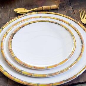 Prato Sobremesa Melamina Bambu Asper 22 cm, feito em melamina com detalhes tipo bambu, material resistente e leve. Seu design é elegante, trazendo praticidade modernidade à mesa e sua estampa acrescenta na decoração da casa. Complete o seu conjunto com os outros itens da linha Bambu Asper