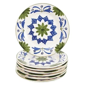Prato de Sobremesa Provence em cerâmica branca feita à mão, detalhado com pintura artesanal em desenhos florais em tons azul e verde, peça vendida de forma unitária O Prato Provence é o que faltava em sua mesa, tornando-a ainda mais requintada e elegante. Seus detalhes florais em tons de azul e verde combinam perfeitamente com a cerâmica branca em que a peça é feita, enobrecendo a mesa e trazendo personalidade e classe para a decoração, servindo sofisticação em todas as ocasiões e enriquecendo o ambiente. Dimensões: 21 cm x 2,5 cm - Cada peça unitária .